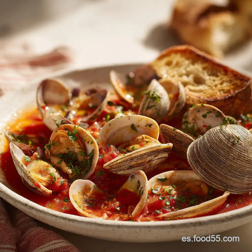 Para romper la densidad del pimentón y el aceite, un truco de última hora es añadir unas gotas de zumo de limón justo antes de servir. No es tradicional en todas las casas, pero ese toque cítrico despierta las notas yodadas de la almeja y hace que la salsa se sienta mucho más ligera en el paladar.