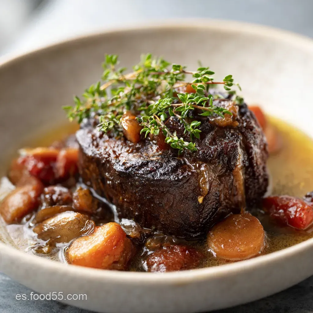 - Sabor/Textura: Carne melosa con una salsa de vino tinto aterciopelada