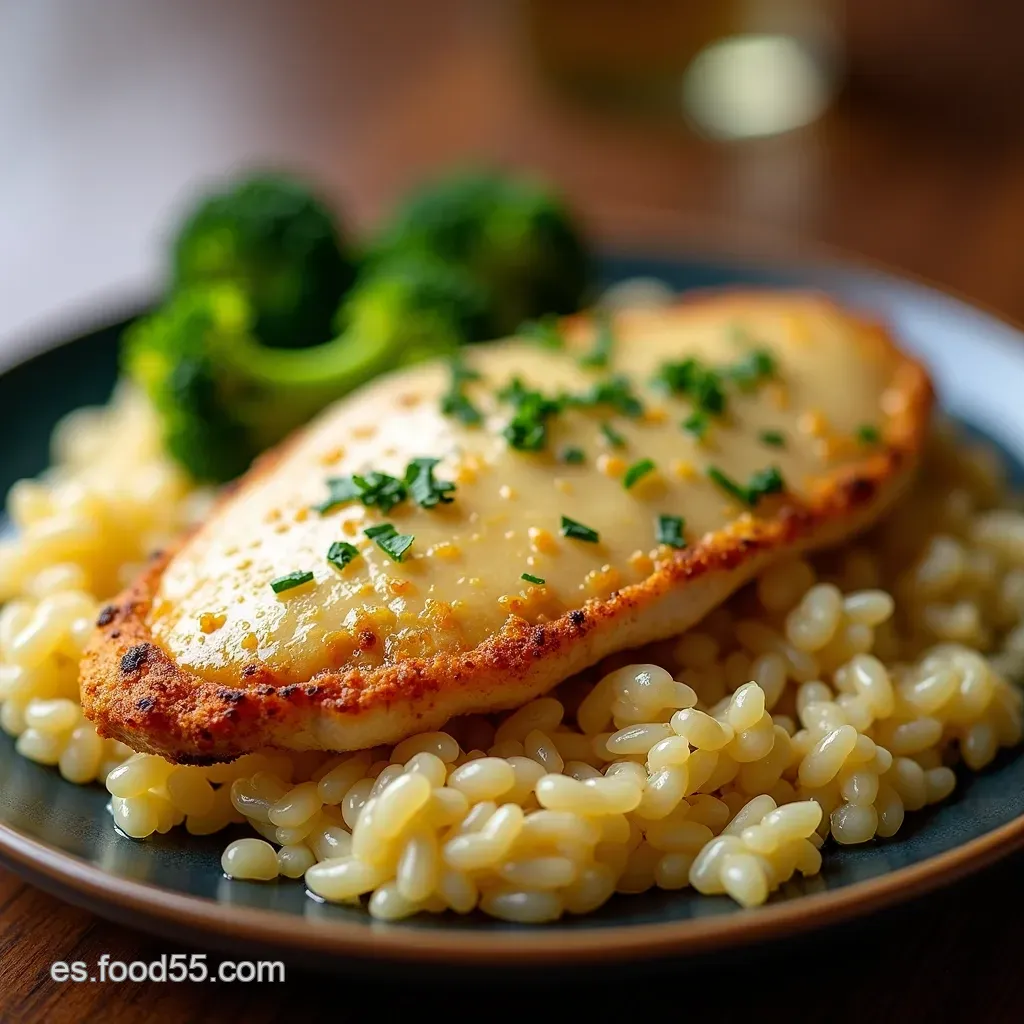 Pechuga De Pollo Crujiente A La Parmesana Y Arro