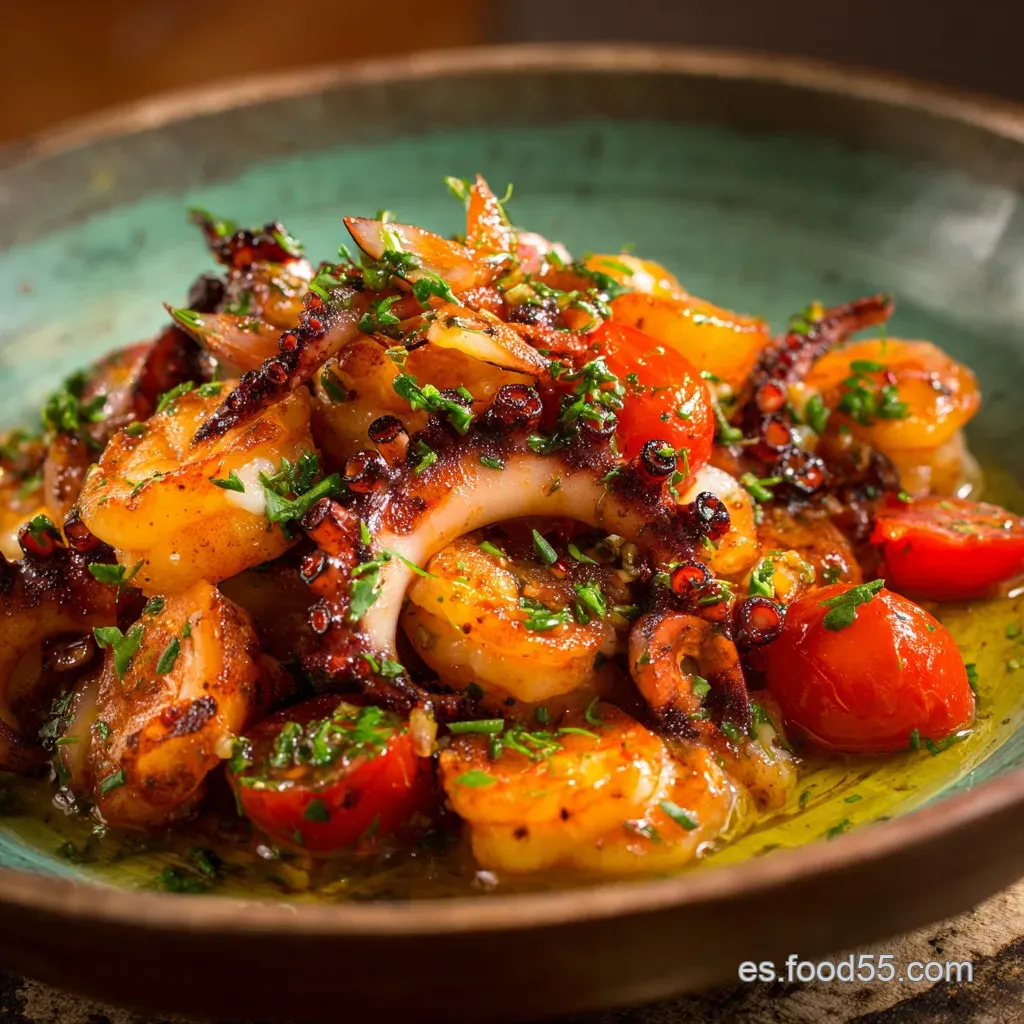 El Equilibrio Umami: Pulpo, Gambas y Vegetales Crujientes